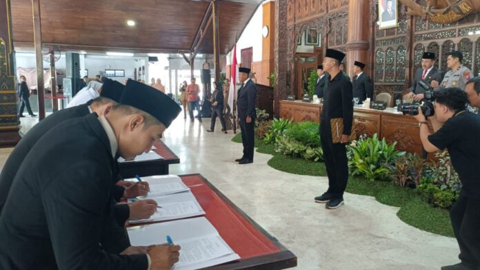 Hadir dalam acara pelantikan, Wakil Bupati Ahmad Baharudin SM, MM, Ketua DPRD Marsono, S.Sos, PLH. Sekdakab Soeroto, S.Sos, MM, perwakilan Forkopimda, Asisten Bupati, para Kepala OPD dan Camat. (Nuha)