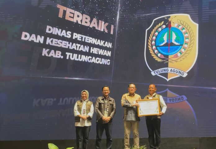 Tulungagung, Liputan11.com – Dinas Peternakan dan Kesehatan Hewan (Disnakkeswan) Kabupaten Tulungagung meraih dua penghargaan bergengsi dari Pemerintah Provinsi Jawa Timur atas keberhasilannya dalam pengendalian dan penanganan Penyakit Mulut dan Kuku (PMK) di wilayah setempat.
