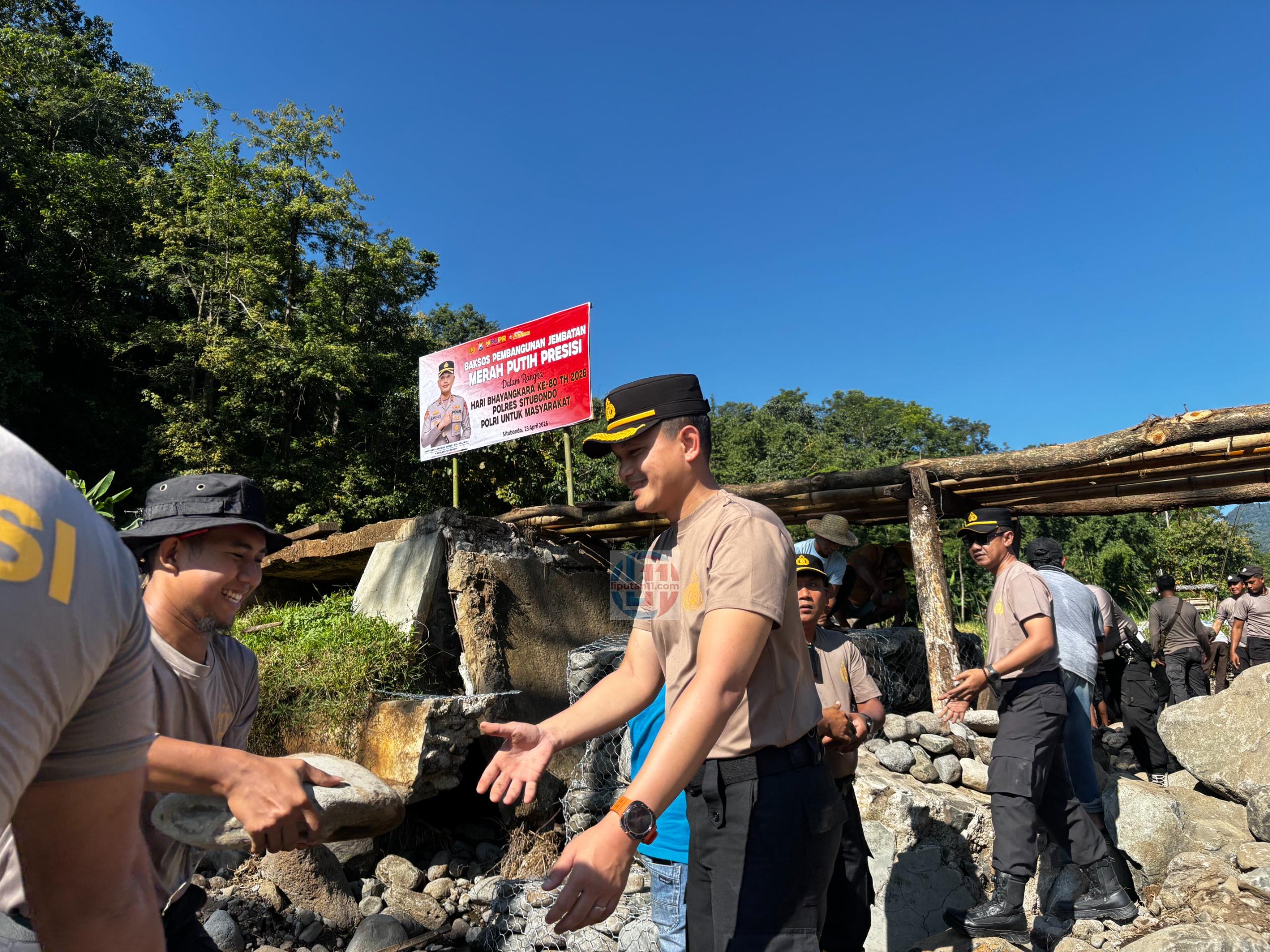 liputan11SITUBONDO — Pembangunan Jembatan Merah Putih Presisi kini menjadi wujud nyata harapan baru bagi warga dan anak-anak sekolah di wilayah pelosok Desa Kembangsari, Kecamatan Jatibanteng. Demi mewujudkan akses vital tersebut, Polres Situbondo melaksanakan bakti sosial (baksos) pengerjaan fisik jembatan secara gotong royong pada Sabtu (25/4/2026) pagi.