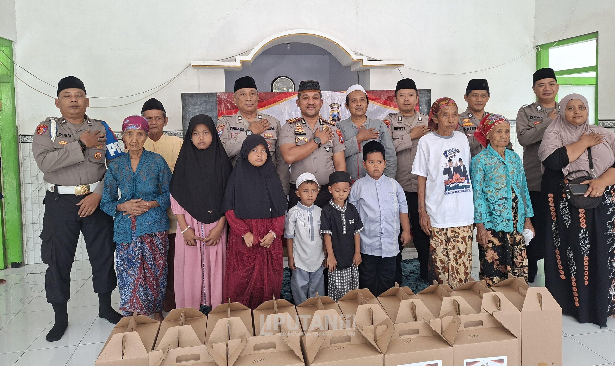 Kapolsek Besuki AKP Febry Hermawan bersama anggota mendatangi musholla yang berada di Dusun Kojuk untuk menyapa warga dan menyerahkan bantuan secara langsung. Puluhan warga membutuhkan dan anak yatim menerima paket sembako dalam kegiatan bertema “Bersama Kita Ringankan Beban Sesama.”