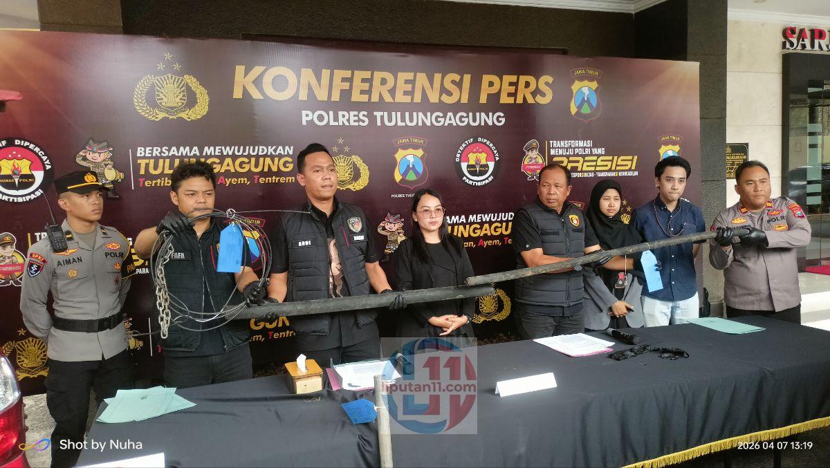 Tulungagung liputan11,- Pencurian kabel tembaga bawah tanah milik PT Telkom Indonesia di wilayah Kalidawir, Kabupaten Tulungagung yang dilaporkan masyarakat pada Kamis (12/3/2026) lalu berhasil diungkap. Satuan Reserse Kriminal (Satreskrim) Polres Tulungagung berhasil mengamankan 10 orang terduga pelaku.