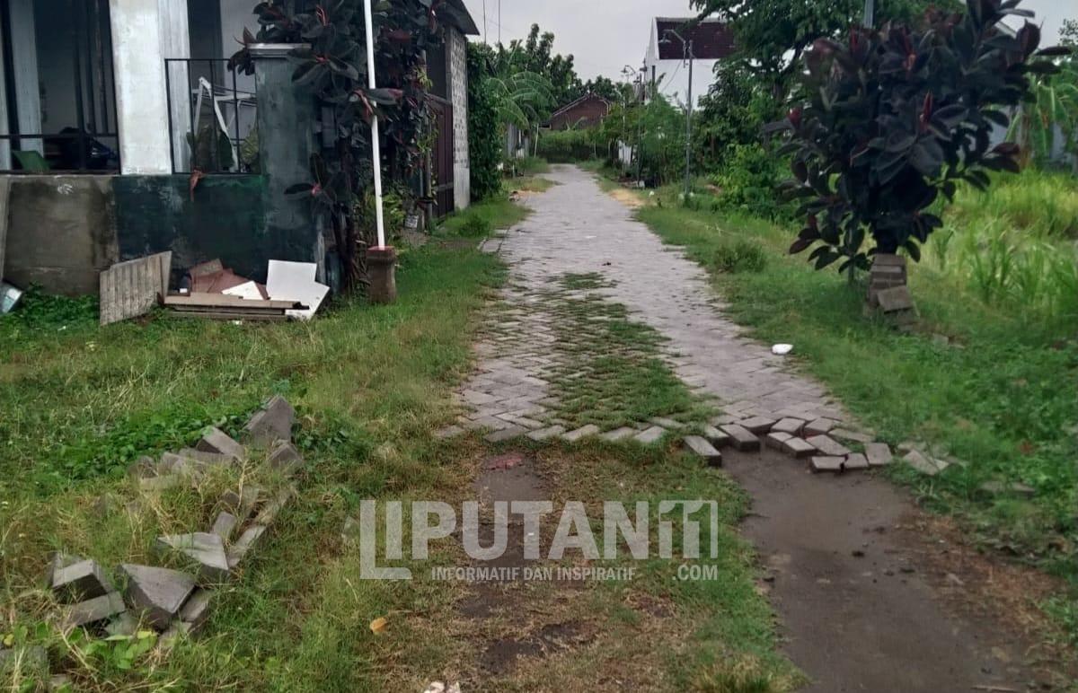 Kondisi pavingisasi di Desa Mojongapit, Kecamatan Jombang, tampak belum rampung dan terbengkalai — sebagian material berserakan dan jalan belum tertata rapi sesuai perencanaan.