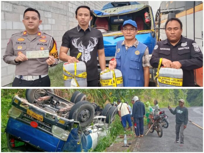 “Saat kami tiba di lokasi untuk olah TKP, sopir tidak berada di tempat. Yang kami temukan hanya kendaraan dalam kondisi terbalik”, terang Kasat Lantas.