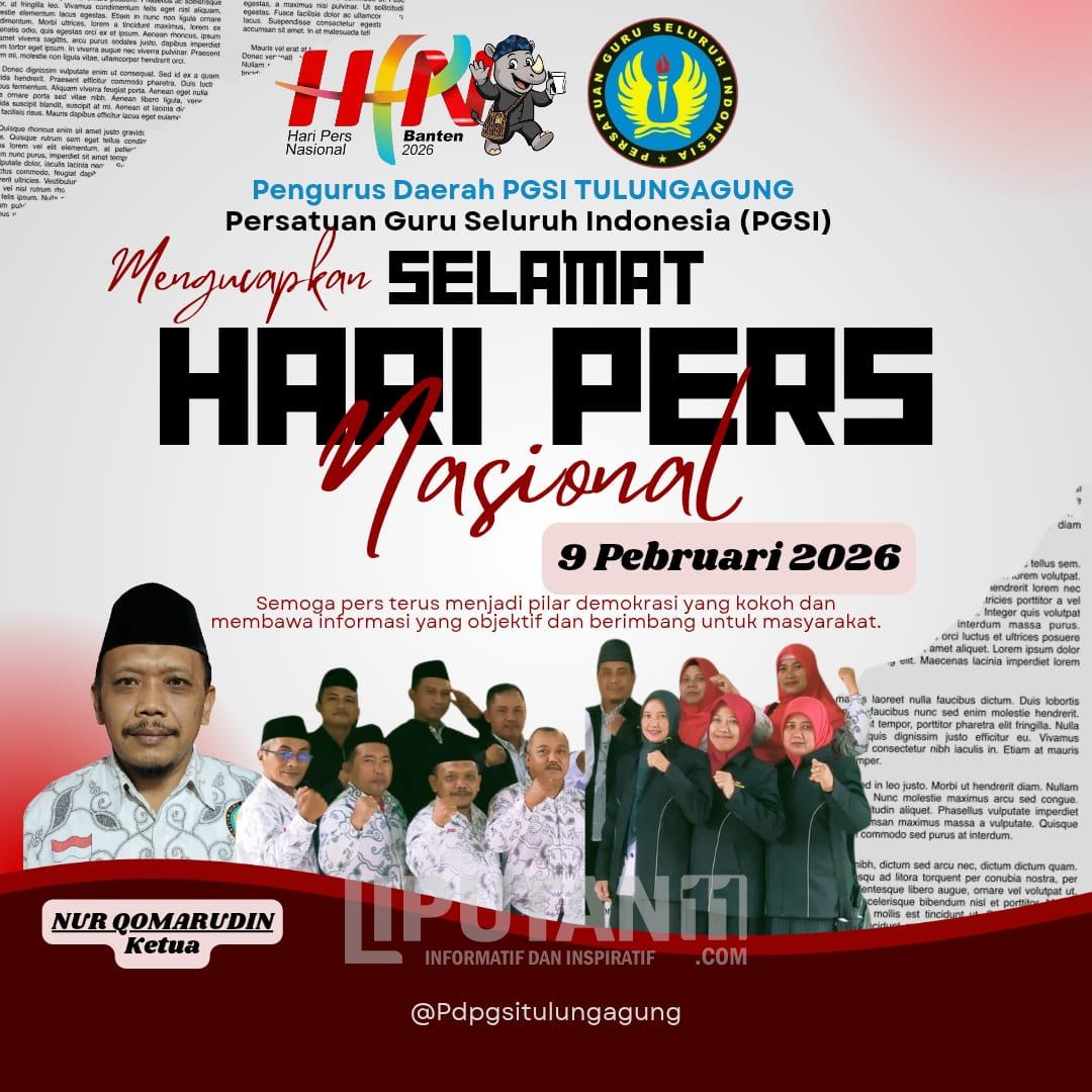 BERANDA/Advertorial/Ucapan Hari Pers Nasional Pengurus Daerah PGSI Tulungagung Ucapan Hari Pers Nasional Pengurus Daerah PGSI Tulungagung redaksiMinggu, 1 Februari 2026 - 16:55 WIB Facebook X WhatsApp redaksiMinggu, 1 Februari 2026 - 16:55 WIB Facebook X WhatsApp Facebook X WhatsApp